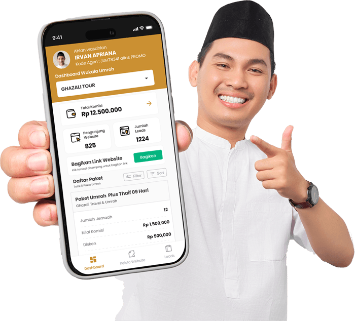 Mendapatkan komisi besar dan beragam dari setiap keberangkatan jamaah, juga peluang berangkat umroh gratis (S&K berlaku)